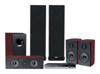 одноблочная система, акустика 5.1, MPEG4(DivX), MP3, JPEG, караоке, мощность акустики: фронт - 90 Вт, тыл - 50 Вт, центр - 50 Вт, сабвуфер - 80 Вт