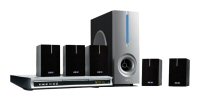 одноблочная система, акустика 5.1, MPEG4(DivX), MP3, JPEG, караоке, мощность акустики: фронт - 15 Вт, тыл - 15 Вт, центр - 15 Вт, сабвуфер - 30 Вт